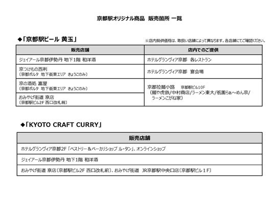 京都駅ビル開発株式会社(代表取締役 若菜真丈)は、2024年3月1日(金)より京都駅ビルオリジナル限定商品「京都駅ビール」と「KYOTO CRAFT CURRY」を販売いたします。