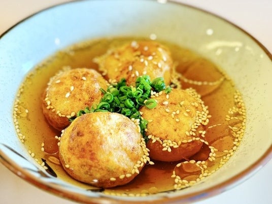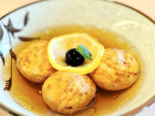 ・浮かぶたこ焼き(ネギ、ゴマ、レモン)