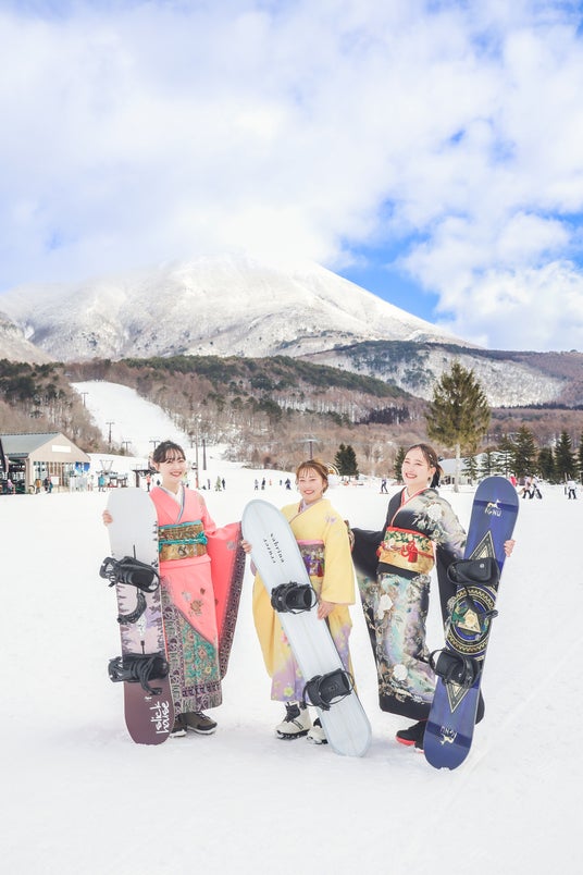 本格的な着物に身を包み、雪景色をバックにした写真を撮影できるプランです(ゲレンデで撮影を行いますが、滑走シーンは含みません)。インバウンド対応、2人以上のお申し込みで催行いたします。