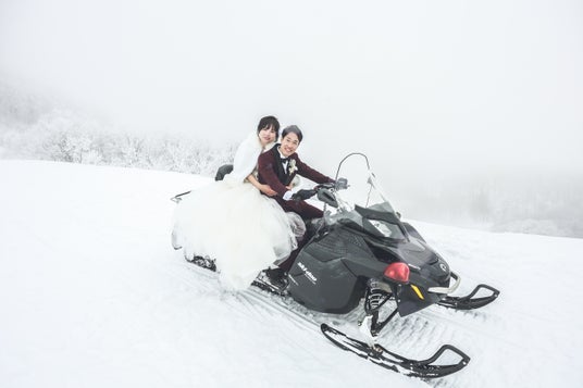 含まれるもの:衣装レンタル、ヘアメイク(新婦)、アクセサリー、ブーケ、着付け、撮影料、撮影データ(200カット)、施設利用料、スノーモービル乗車、リフト貸切(営業時間前、天候に応じて)