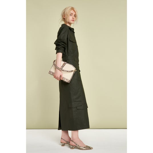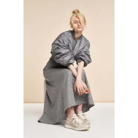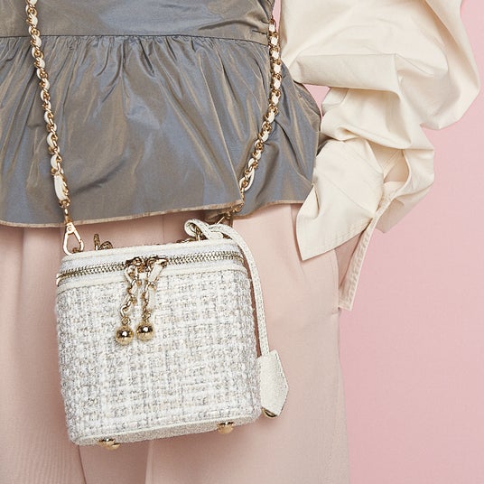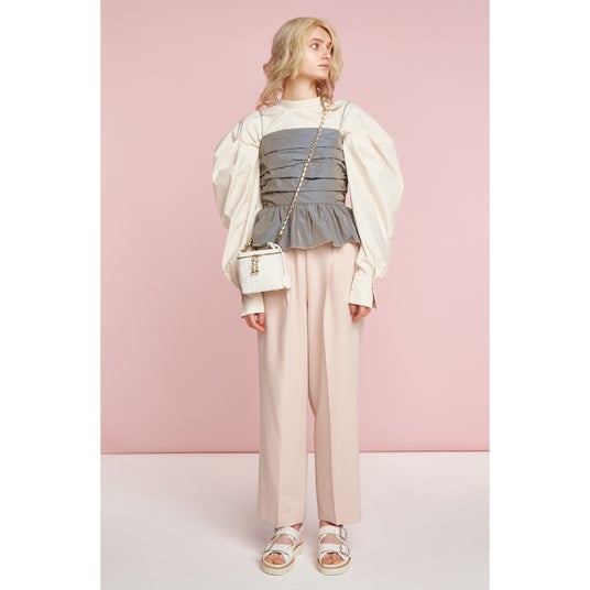 1970年~2010年頃のアーカイブに眠るスタイル要素やスタンダードを大胆なカラーや素材でアレンジしました。ベーシックなデザインに、メタリックやガラスレザーなど艶感のある素材や、チュールやメッシュなどシアー感のある素材を合わせ新鮮な印象に。