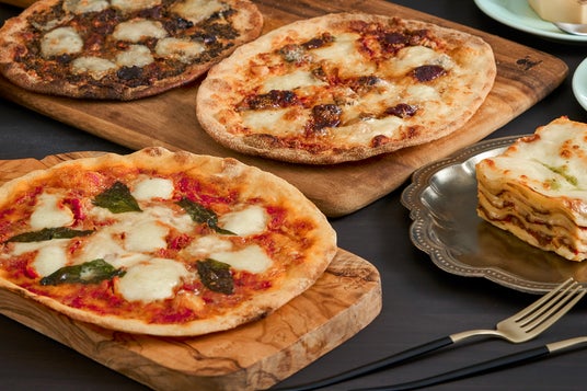 オリジナルピッツァ3枚と、ニンニクや玉ねぎを使わないオリジナルのミートソースを使用したラザニア、抹茶ティラミスをセットにしました。※トラディショナル ティラミスは付いておりません。