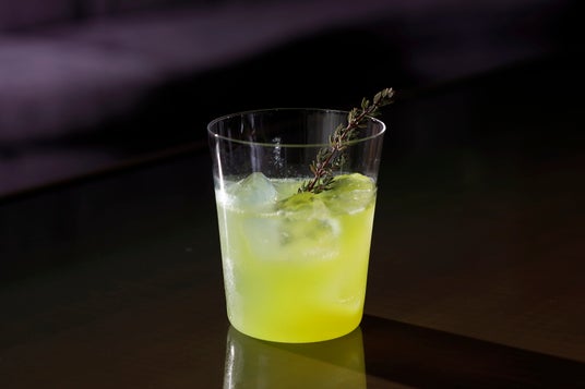 シトラス香るジンとエルダーフラワー、ハーブリキュールのカクテル。ライム果汁の酸味がアクセントになっています。