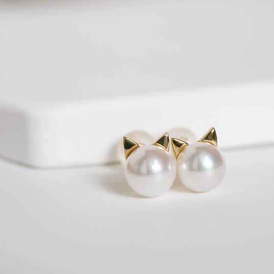 柔らかい乳白色の淡水パールが上品でかわいい猫ピアス。さり気ないサイズ感が清楚な印象に。