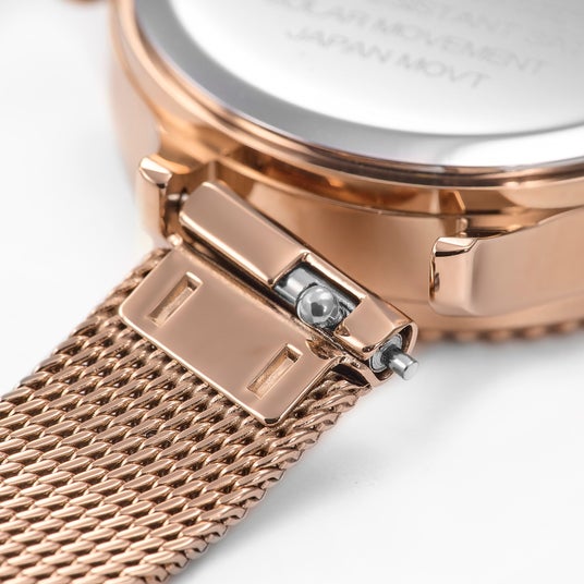 イージークリック機構を備えたメッシュベルトデザインだけでなく機能性も充実太陽光や蛍光灯の光で充電可能なソーラー電池を搭載しており、電池交換の手間を大幅に軽減します。