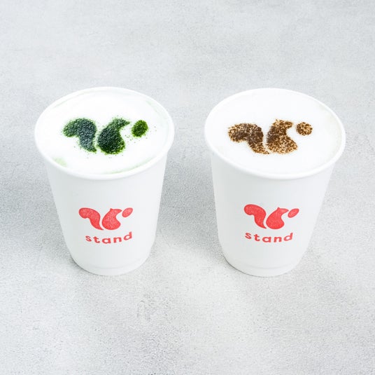 (左)抹茶ティーラテ (右)アッサムティーラテスチームミルクベースのほんのり甘みのついたティーラテです。アッサムティー、抹茶、凍頂烏龍茶をご用意しました。まろやかな口当たりとそれぞれの茶葉の香りをお楽しみください。