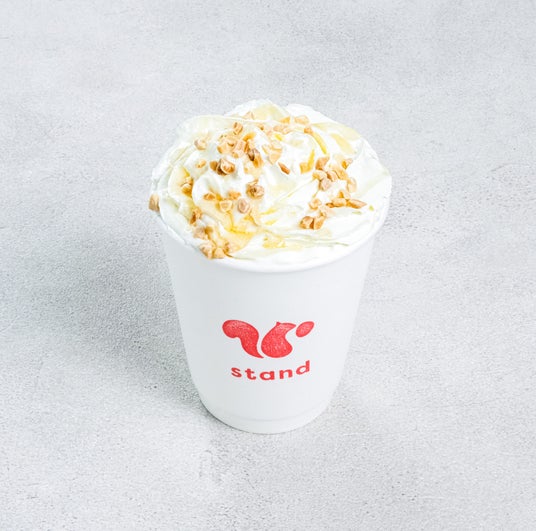 バニラミルクティーキーモン紅茶を使ったバニラが香るスペシャルなミルクティーです。アクセントとしてはちみつとアーモンドダイスをトッピングしています。