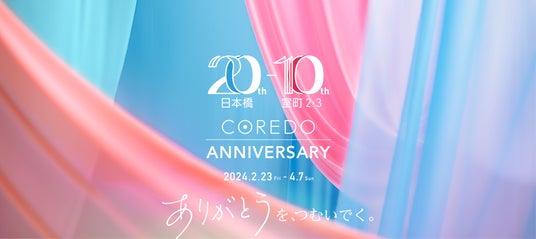 三井不動産商業マネジメント株式会社(本社:東京都中央区、代表取締役社長:大林 修) が運営する三井ショッピングパーク アーバンの施設、20周年を迎えるCOREDO日本橋・10周年を迎えるCOREDO室町にて、COREDO ANNIVERSARYを開催いたします。