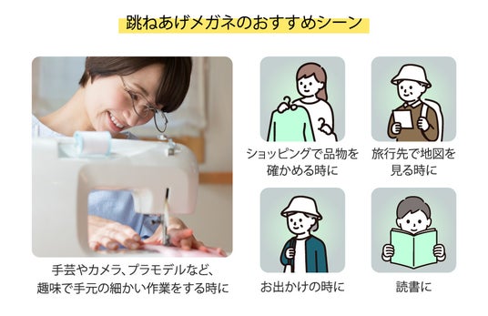 ワンタッチでレンズを跳ね上げできるメガネが便利です!