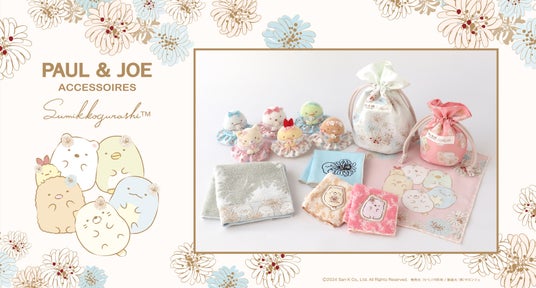 PAUL & JOE(ポール & ジョー)のシンボルモチーフである『クリザンテーム(西洋菊の一種)』とすみっこがおちつく、ちょっぴりネガティブなキャラクター『すみっコぐらし』たちがコラボレーションしたスペシャルデザインの雑貨アイテムが登場します。個性的で愛らしいすみっコたちにぜひご注目ください。■商品一覧