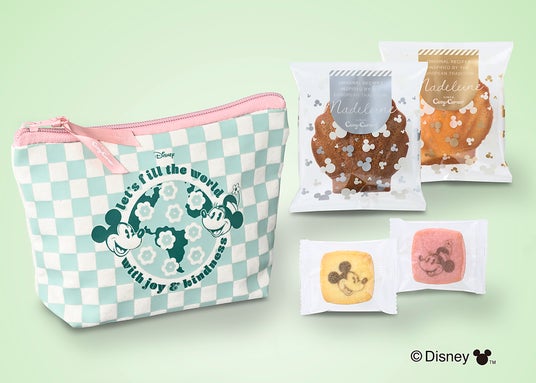 人気のくすみパステルカラーで、ミッキーマウスとミニーマウスをデザインしたコットンポーチに、4種の焼菓子を詰め合わせた「<ディズニー>ハピネスポーチ(10個入)」が期間限定で登場。