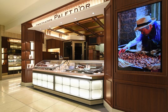 ・東京、大阪、銀座店ブティックでは数十種類にも及ぶボンボンショコラや、チョコレートを使ったガトー(ケーキ)などを販売。東京 丸の内店、大阪店にはサロンを併設し、カカオを使ったオリジナルのドリンクやパフェの他、ショコラに合わせて特別にブレンドしたカフェ、自家製カカオパウダーを使ったビーン トゥ ココア(カカオ豆から自社で作るココアドリンク)を提供しています。また、シャンパンやウイスキーとショコラのマリアージュなど、カカオからチョコレートまでの全工程を手掛ける「ショコラティエ パレドオール」ならではのショコラとの様々な楽しみや商品を提案しています。