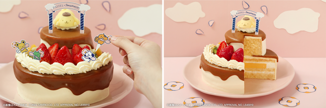 模ったお友達たちが愛らしい「ポムポムプリン」の誕生日を盛り上げます。「ポムポムプリン」の