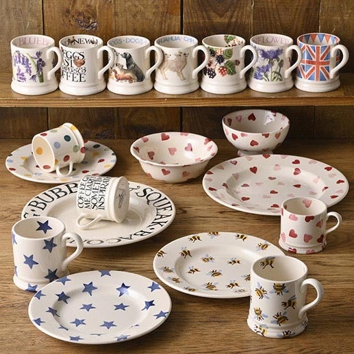 <エマ・ブリッジウオーター>マグ(容量約300ml) 各5,280円/マグ(容量約175ml) 各3,740円/プレート(直径約22cm) 各4,620円 プレート(直径約27cm) 各5,500円/フレンチボウル(直径約13.6cm) 5,060円 シリアルボウル(直径約16.4cm) 5,060円 ともに陶器、英国製