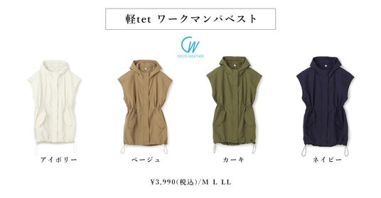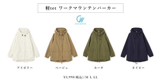 今回発売する「軽tet(カルテット) ワークマウンテンパーカー」は、花粉・UV対策、はっ水、コンパクトの4つの機能が兼ね備えられたアイテムです。花粉の飛散を筆頭に、紫外線の強まり、突然の雨や昼夜の寒暖差など、季節の変わり目とされる春に万能的にお使いいただけます。■商品情報