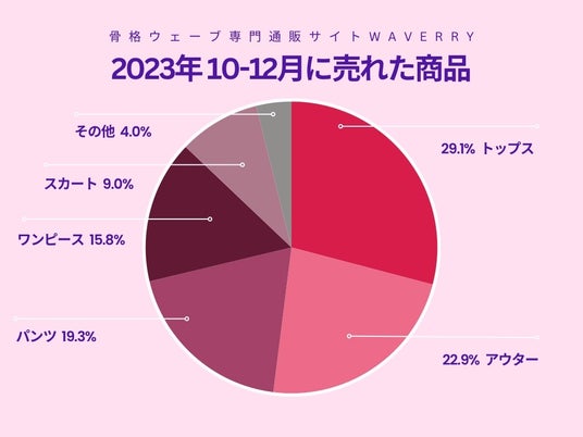 骨格ウェーブの方のあらゆる悩みを解決するブランドショップWaverryで、2023年の10~12月にどのようなカテゴリの商品が購入されたか、当社独自のデータをもとに調査