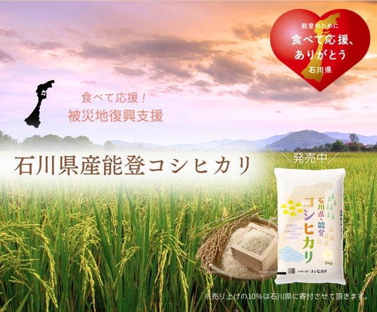 福井精米株式会社(代表:樋田光生、所在地:福井県福井市森行町5-15-2)は、このたび、「令和6年能登半島地震」復興支援商品として、石川県能登産コシヒカリを通販サイト「福井の米屋」にて発売開始いたしました。