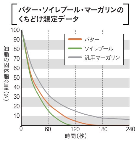 グラフは人が口に入れた時に溶ける曲線を示したもので、バターよりも口溶けが早いことが分かります。