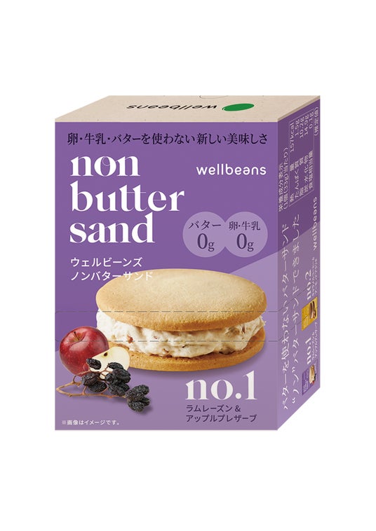 「wellbeans」は、特許取得の世界初の独自の製法「USS(Ultra Soy Separation)製法」※2により、バター、生クリーム、卵など、動物性の食材を一切使わずに、濃厚なコクと風味を実現した全く新しい植物性食品ブランドです。第一弾では、卵、バター、生クリームを使わずに濃厚さを生み出すことに成功した2種類の超濃厚なテリーヌを販売し、大変好評をいただきました。第二弾として、USS製法※2が生み出した次世代の植物性バター「ソイレブール」 を使用した「non butter sand」より「ラムレーズン&アップルプレザーブ」と「キャラメルコーヒー&アーモンドプラリネ」 の2種類のフレーバーを2023年12月より公式ECサイトにて販売開始しております。