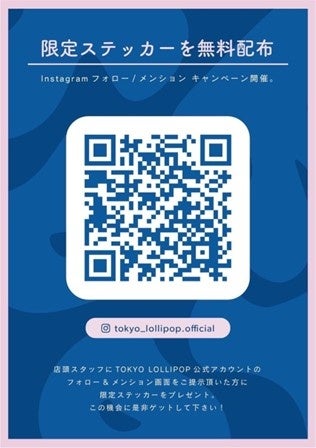 期間中、スタッフに「TOKYO LOLLIPOP」公式アカウントのフォロー&メンション画面をご提示いただいた方、先着300名さまに限定ステッカーをプレゼント!