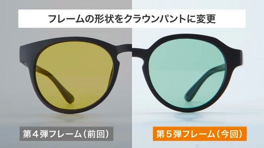 第5弾となる今回のプロジェクトでは、フレームの形状をクラウンパントに変更いたしました。流行りのクラウンパウントフレームはファッション性も高く、レンズ部分もこぶりなため、日常にも取り入れやすいです。