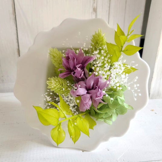 お盆に向けて、お花のお供え物を作ります。 素材:プリザーブド&シルクフラワー