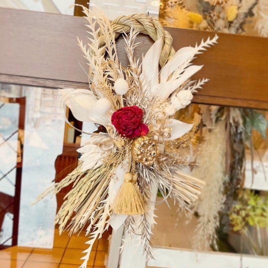 トレンドに合わせたお正月飾りを作ります。 素材:シルクフラワー