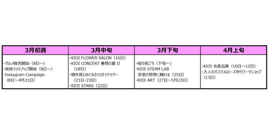 株式会社西武リアルティソリューションズ(本社:東京都豊島区、代表取締役社長:齊藤 朝秀)は、東京ガーデンテラス紀尾井町において2024年3月8日(金)~4月21日(日)まで、KIOI SPRING 2024 『紀尾井・花の駅』と題したイベントを開催いたします。期間中、江戸時代の宿駅(宿場町)をモチーフに桜を楽しむひとときをお届けいたします。