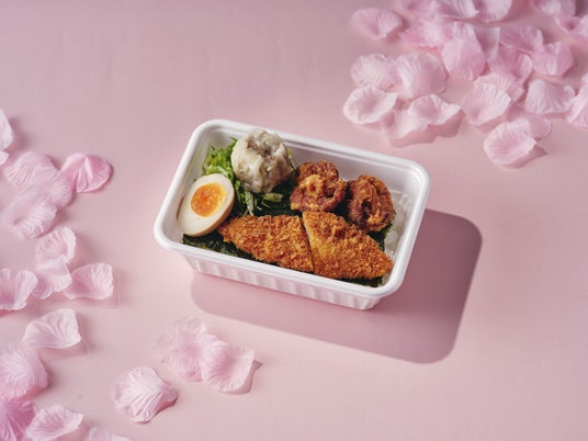 800円(税込)香り高い海苔ごはんの上に、焼売 、唐揚げ、白身魚のフライ、味付け玉子と人気商品を全部載せて大満足の一品。花見散歩の腹ごしらえにぜひどうぞ。