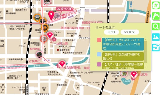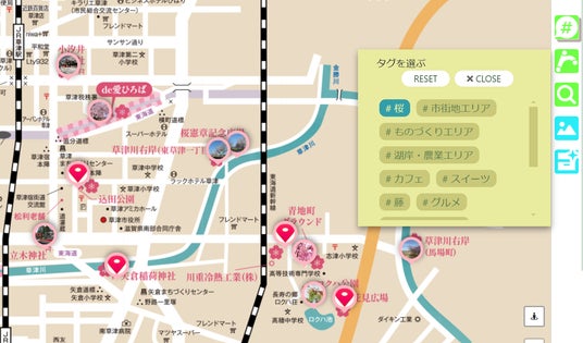 ジオ・マーク株式会社は関西エリア初のプロジェクトとして、草津市観光物産協会が制作する「草津の桜・藤名所マップ」のデジタル化をサポート、WEB公開しました。