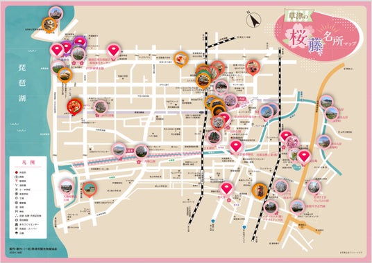 今回のプロジェクトは草津市全域の桜スポットを網羅的に紹介することを中核に据え、桜に続いて見頃を迎える藤の花の鑑賞スポットや市内各地のスイーツ店など、桜とセットで楽しめる魅力的なスポットを合わせて紹介。