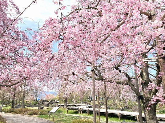 シダレザクラが咲き誇る、市立水生植物公園みずの森