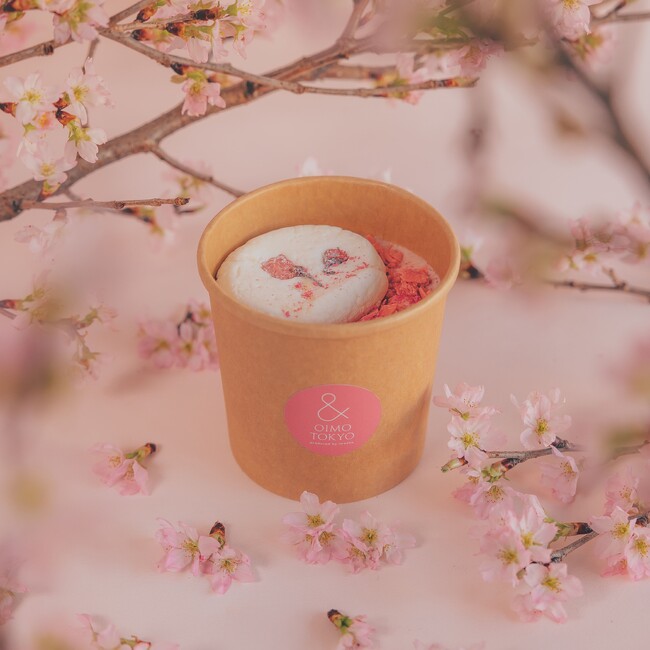 全長約4kmにわたり約800本のソメイヨシノが咲き誇る全国一位の人気お花見スポット、目黒川沿いの桜並木。昼は春風に吹かれる中で壮大な光景を楽しみ、夜には夜桜が美しくライトアップされピンクのぼんぼりが点灯することで目の前には幻想的な光景が広がる、春のうららの目黒川。この度、全国各地から大勢の花見客で賑わうお花見の名所のすぐ近くにある、熟成蜜芋スイーツ専門店《& OIMO TOKYO》の旗艦店《& OIMO TOKYO CAFE 中目黒》では、3月1日(金)から、お花見シーズン限定蜜芋の桜スイーツを販売いたします。厳選したさつまいもやこだわり抜いた食材を使用し、味はもちろん、見た目も可愛らしいさつまいもスイーツで目黒川の桜シーズンを彩ります。