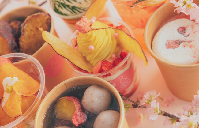 TVでも多数取り上げられてきた人気メニューを桜仕様にアレンジした「こぼれ蜜芋モンブランパフェ~中目黒桜まつりスペシャル~」をはじめ、国産の桜や苺をあしらった見た目も可愛らしいパフェやドリンクをご用意。また、春にぴったりの華やかなメニューを、持ち運びしやすいカップに入れたお持ち帰りメニューも多数取り揃えております。東京の桜名所、誰もが目を奪われる目黒川の桜並木とともに、見た目にも可愛く彩り豊かな蜜芋スイーツを是非ご堪能ください。