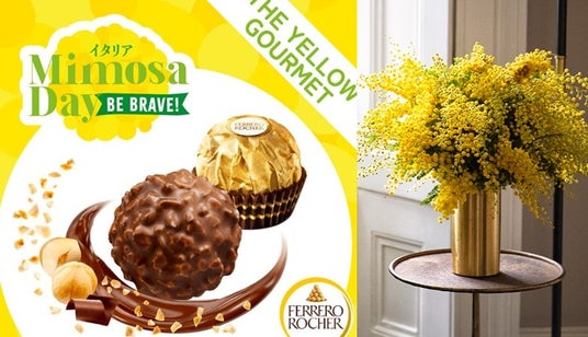 4年間にわたって、在日イタリア商工会議所はCBCテレビ(TBSテレビ系列局・中京広域圏)とコラボレーションを展開しています。2月28日から3月7日までの1週間の間、CBCテレビにてミモザの日の特別なメッセージを放送します。そしてCBCテレビ視聴者の女性の皆様にミモザの花のようにイエローゴールド・黄金に輝くFerrero Rocherのチョコレートをプレゼントします。