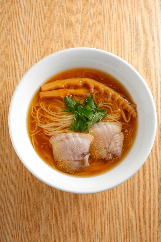 〇鰹や昆布のだしの旨味と香味野菜の甘味を効かせたどこか懐かしさがある奥深い味わいのスープが特徴。