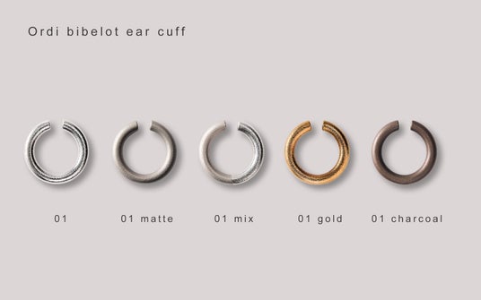 Ordi bibelot (オーディビベロ)は、日常をともにする小さな装飾品。Ordi bibelot ear cuff(オーディビベロイヤーカフ)はアレルギー性の低い素材であるサージカルステンレスを用いた鋳物製です。サージカルステンレスは耐食性が優れており錆びにくく、医療用工具のメス等にも使用されています。鋳物の風合いとシンプルなリング状を基本としたデザインは、お手持ちのアクセサリーと合わせたり、性別や年齢を問わずお使いいただけます。