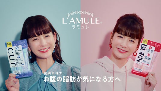今回公開した新WEBCMでは、ポジティブな笑顔が印象的なスザンヌさんが新たにブランドアンバサダーに就任。糖や脂肪が気になる贅沢なスイーツも「L’AMULE CUT(ラミュレ カット)」を飲むことで罪悪感なく思い切り楽しむ様子や 、日々の退屈な家事も「L’AMULE BURN(ラミュレ バーン)」を飲むことで効率的にエネルギー消費を高めるポジティブなものに変わる様子を表現しました。