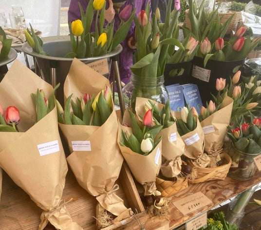 1.GREEN FIELD FLOWERS オーガニックフラワー(旬のチューリップ)、自家栽培無農薬野菜