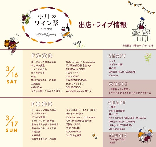 (「小川のワイン祭 in metsa -2024 spring-」情報公開第3弾)