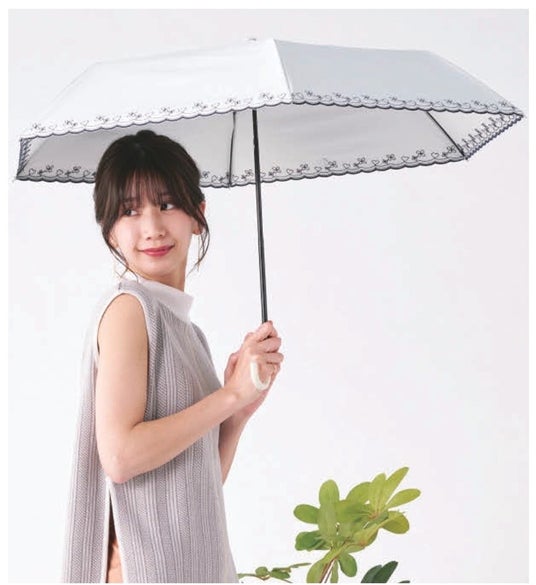 ・ビューティーシールド内側に施されたカラーラミネーションにより、日傘でありながら顔映りを明るくきれいに見せてくれます。 顔まわりが明るい印象となる日傘で軽やかにお出かけしましょう。