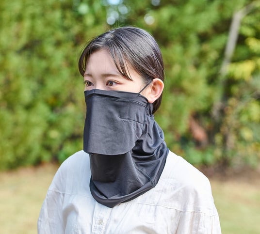 ・抗菌と速乾機能を備えた接触冷感生地を使用、ノーズパッド入りなので呼吸のたびに鼻に張り付くこともなく、口の部分に付いた小窓で呼吸も給水もラクにおこなえます。