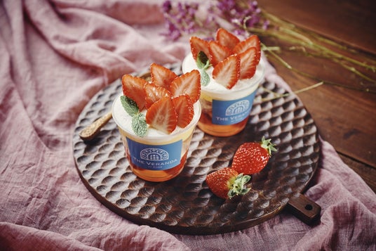 ”あまおう”を使用したオリジナルの人気スイーツ「サヴァラン」や「苺入りスパークリング」、「苺ミントのソフトクリーム」等の定番人気商品を、神戸の絶景や彩る春のガーデンを眺めながら優雅にお楽しみください