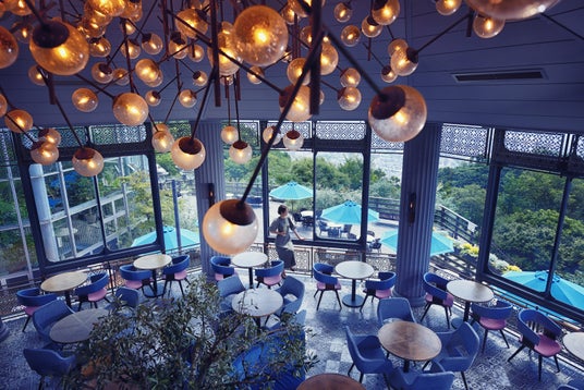 神戸の絶景を眺めながら過ごすことができる、「ザ・ヴェランダ神戸 2Fカフェラウンジ」のラグジュアリーな空間