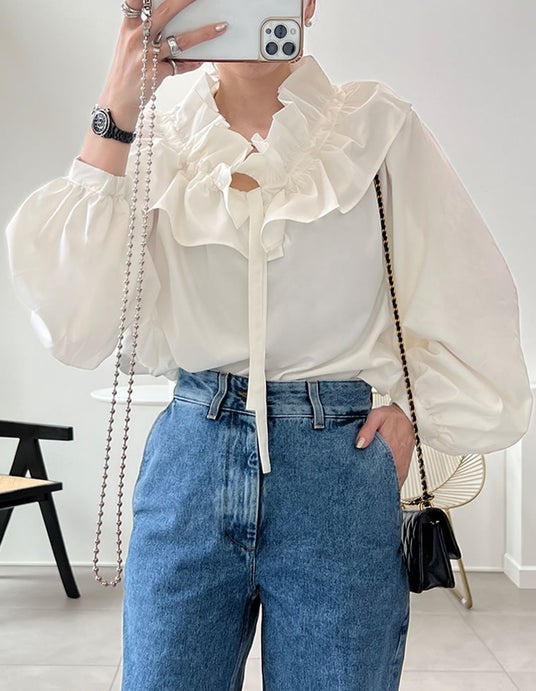 一枚取り入れるだけで華やかさとこなれ感をプラスするフリルブラウス