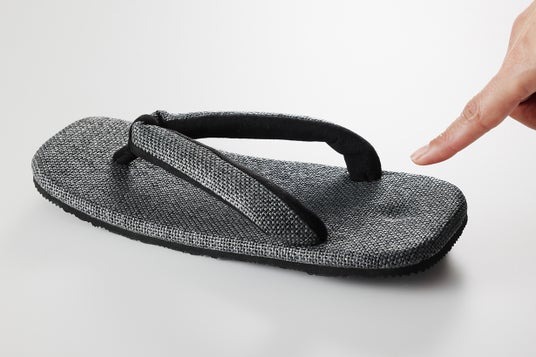 足をのせる部分には「表」と呼ばれるクッション入りのパーツが取り付けられています。その芯材には衝撃吸収性に優れ、長期間の圧縮に対して高い復元性を発揮するためヘタリ難く、人間の体温付近で抜群のフィット感を発揮するスポーツシューズのインソールなどにも採用されている素材を使用しています。