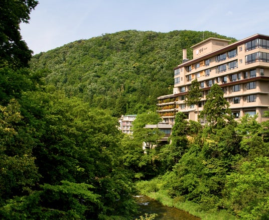 北陸随一の渓谷美と謳われる「鶴仙渓」沿いの加賀コンシャスな湯宿。ミシュランガイド北陸版2021にて三つ星を獲得。館内は山中塗や九谷焼、加賀水引ランプシェードなどの伝統工芸品を配し、加賀の上質な文化を感じられる設えです。