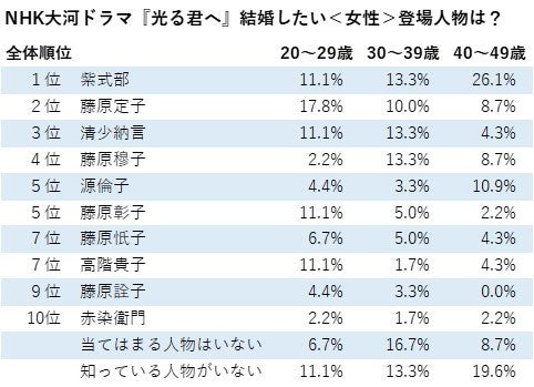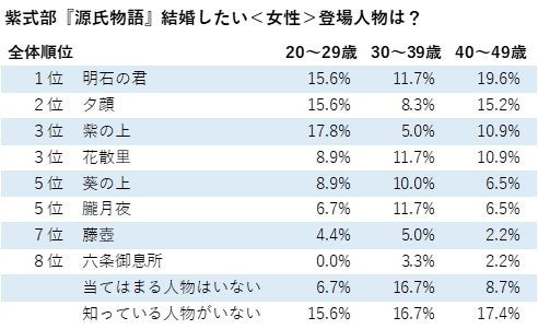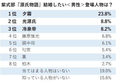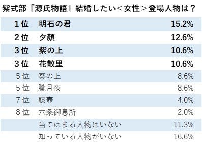 大河ドラマの主人公・紫式部は、日本最古の長編恋愛小説『源氏物語』の作者として知られています。今回の調査では、『源氏物語』の登場人物についても、結婚したいと思う相手を聞いてみました。