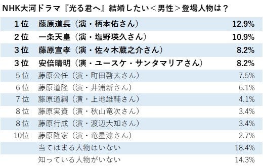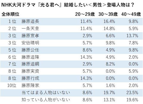 ・NHK大河ドラマ『光る君へ』で結婚したいのは?男性「紫式部」、女性「藤原道長」がトップ