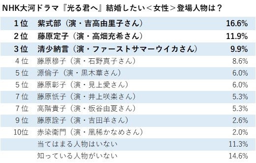 ■NHK大河ドラマ『光る君へ』で結婚したいのは?男性「紫式部」、女性「藤原道長」がトップ